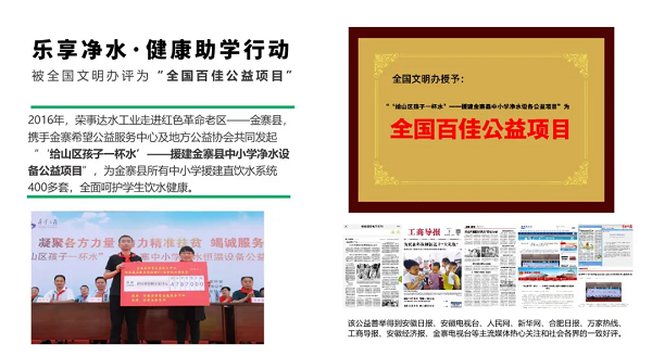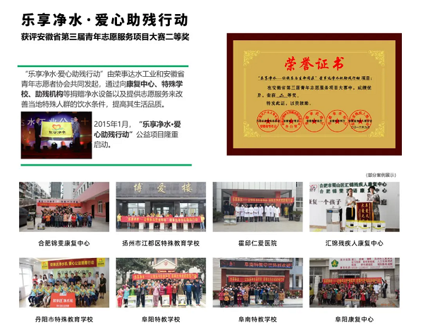 榮事達(dá)水工業(yè)公司積極投身于公益事業(yè),其公益行動(dòng)廣泛覆蓋健康助學(xué)、愛心助殘、精準(zhǔn)扶貧及鄉(xiāng)村振興等多個(gè)領(lǐng)域,公益的足跡遍布全國。公司用實(shí)際行動(dòng)踐行社會(huì)責(zé)任,彰顯企業(yè)擔(dān)當(dāng),贏得了社會(huì)各界的廣泛贊譽(yù)。