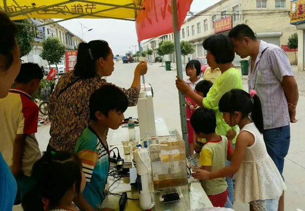 據(jù)了解,為了讓當(dāng)?shù)鼐用窳私庾约业乃|(zhì)狀況,活動前一天,當(dāng)?shù)卮砩毯蜆s事達(dá)水工業(yè)的工作人員下鄉(xiāng)為居民們免費(fèi)檢測水質(zhì)。結(jié)果表明,當(dāng)?shù)氐乃|(zhì)偏硬,重金屬含量偏高,不僅異味重,而且口感較差,飲水狀況令人堪憂。