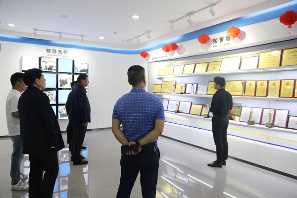 領(lǐng)導(dǎo)一行深入榮事達(dá)智慧水世界展廳,聽取了講解員對榮事達(dá)水工業(yè)發(fā)展歷程、榮譽(yù)成就、公益行動(dòng)及黨建引領(lǐng)的全面介紹。