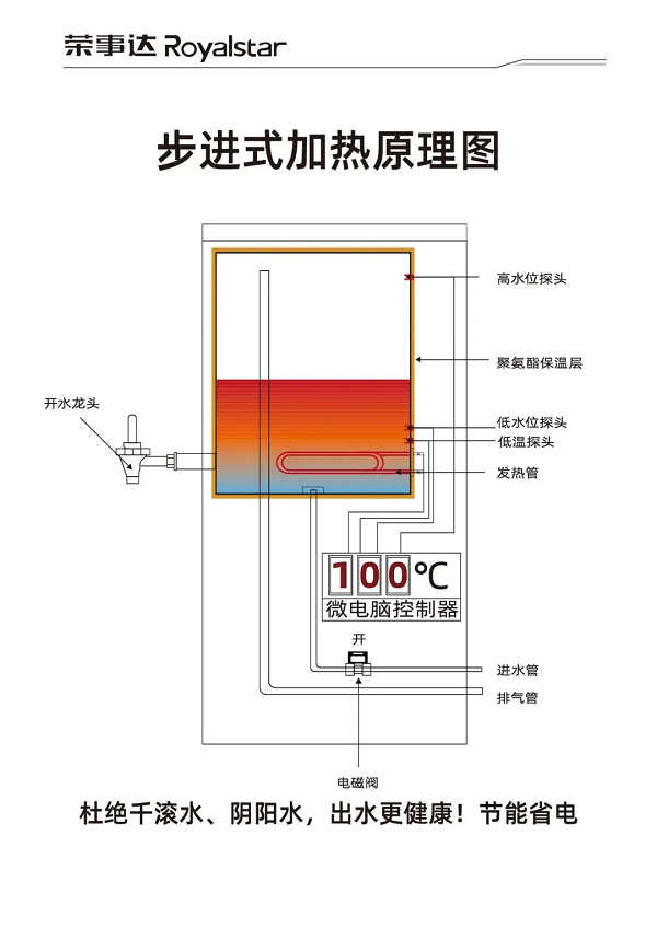設(shè)備采用了RO反滲透、紫外線殺菌、多級凈化等先進工藝,有效去除了水中的泥沙、鐵銹、重金屬、余氯等有害物質(zhì),確保水質(zhì)干凈、安全。同時,步進式加熱設(shè)計避免了“陰陽水”的產(chǎn)生,保證了連續(xù)供應(yīng)開水的品質(zhì)。