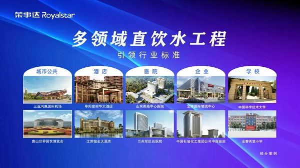 03 榮事達多領(lǐng)域直飲水工程 榮事達水工業(yè)公司作為凈水領(lǐng)域的佼佼者,已經(jīng)擁有二十年的行業(yè)積累。其產(chǎn)品覆蓋有千萬家庭、2000+企事業(yè)單位、3500+校園等場所。此外,榮事達水工業(yè)公司還獨立設(shè)計施工大型直飲水工程,包括秦始皇兵馬俑博物館、唐山世界園藝博覽會、三亞鳳凰國際機場、合福高鐵沿途站點等知名項目,以及埃塞俄比亞總統(tǒng)府、馬來西亞巴生港、贊比亞恩多拉機場、巴基斯坦默蒂亞里等海外項目,贏得了廣泛的贊譽和信賴。